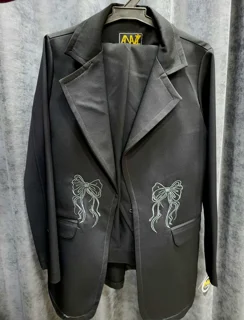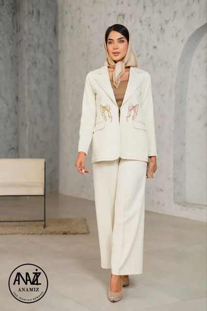 ست کت و شلوار زیبا با طرح پاپیون گلدوزی شده، از جنس پارچه مازراتی کجراه با دوختی بینظیر، مناسب مجالس و محیطهای رسمی، که ترکیبی از شیکپوشی و کیفیت را به شما ارائه میدهد.
